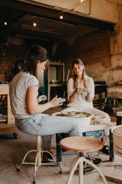 Vooraleer we de bodem kunnen afwerken, moet klei drogen. Keramiek is een traag proces en het afdraaien zal tijdens deze workshop dus niet aan bod komen. Je kiest drie potjes die geglazuurd worden, deze worden afgewerkt door het atelier.
